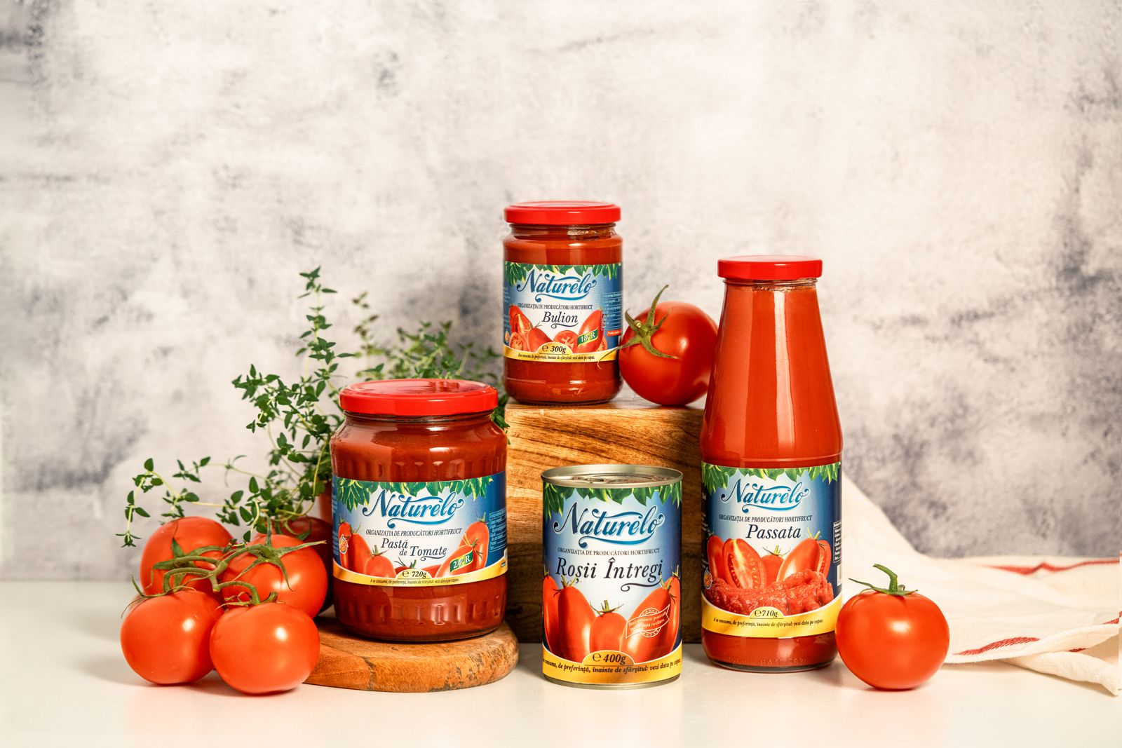 Passata de roșii Naturelo este produsă exclusiv din roșii cherry românești, fără adaosuri, având un gust dulce și echilibrat. Produsul este disponibil atât sub brand propriu, cât și în variante dedicate etichetelor private ale unor retaileri.